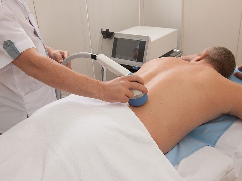 Ударно-волновая терапия — аппаратное воздействие на ткани прицельными акустическими волнами определенной частоты. УВТ используется в лечении остеохондроза для разрушения хрящевых и костных разрастаний, стимуляции кровоснабжения, ускорения процессов метаболизма. Под действием ударной волны, схлопывающихся кавитационных пузырьков, микроструй остеофиты дробятся на мелкие части, а затем выводятся их организма.