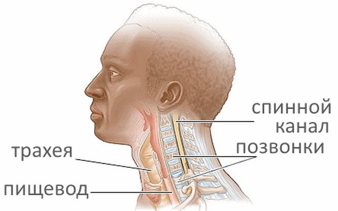 Шея является областью прохождения крупных магистральных сосудов и нервных пучков, здесь же располагаются трахея, пищевод и спинной мозг. При воспалении корешков спинномозговых нервов, зажатых деформированными остеохондрозом дисками позвонков, происходит нарушение питания мышц и органов шеи, что вызывает спазм, ощущаемый, как комок в глотке. Также подобные неприятные ощущения кома обуславливаются невротическими явлениями из-за поражения вегетативных нервных волокон, отвечающих за функции внутренних органов. В этом случае ощущение кома в горле сопровождается психологическим дискомфортом – боязнью глотания, страхом задохнуться.