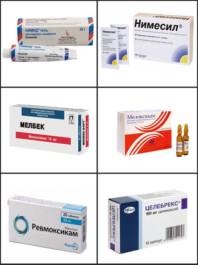 - нестероидные противовоспалительные средства с активными ингредиентами ибупрофеном, кетопрофеном, мелоксикамом, диклофенаком, нимесулидом;