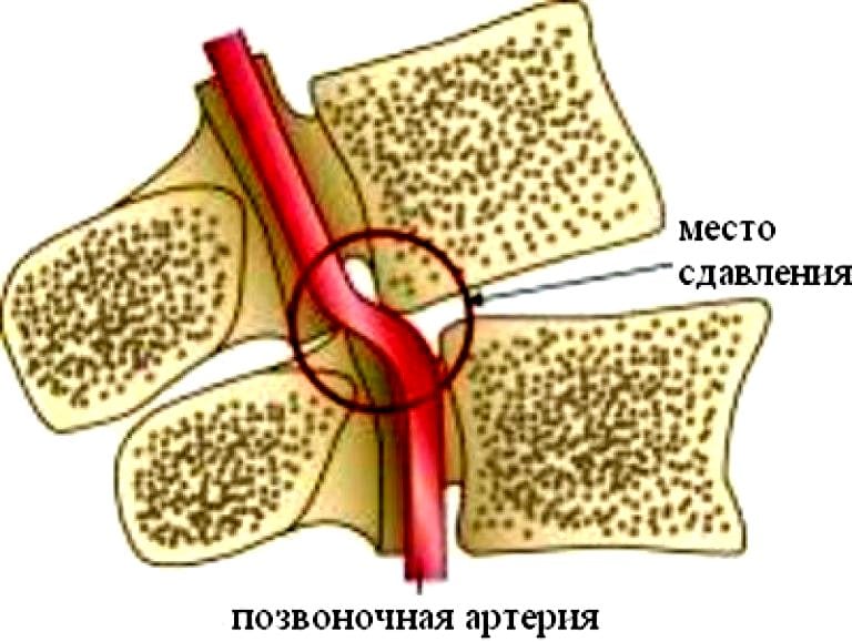 Сдавливание позвоночной артерии нарушает приток крови к головному мозгу. С правой и левой стороны позвоночного столба находятся сосуды, снабжающие кровью его важнейшие отделы, ответственные за регуляцию всех систем жизнедеятельности. При сдавливании артерий дефицит кислорода и питательных веществ ощущается в стволе головного мозга, продолговатом мозге, затылочных долях, мозжечке, внутреннем ухе, верхних участках спинного мозга.