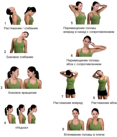 Регулярные занятия лечебной физкультурой и гимнастикой — самый эффективный способ избавиться не только от тошноты, но и от всех симптомов остеохондроза. Комплекс упражнений составляет врач ЛФК, учитывающий физическую подготовку пациента, стадию течения и локализацию патологии, развившиеся осложнения (грыжа, корешковый синдром). Основная задача лечебной физкультуры — укрепление мышц и стабилизация позвоночных сегментов. Особенно хорошо зарекомендовали себя следующие упражнения при шейном остеохондрозе: