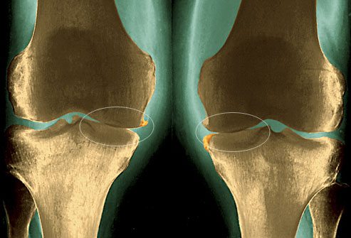 Дегенеративно-дистрофическое заболевание, опасное рецидивирующим течением. В отличие от артрита не сопровождается воспалительным процессом в коленном суставе. По мере развития остеоартроза разрушаются хрящевые ткани, которые выстилают костные головки, обеспечивают гладкость их скольжения. Для стабилизации сустава патологически разрастаются костные пластинки, формируются остеофиты. Они сдавливают мягкие ткани, связки и сухожилия, запуская воспалительный процесс. На этой стадии возникают первые клинические проявления — утренняя припухлость, скованность движений, боль, усиливающаяся при подъеме тяжелых предметом.