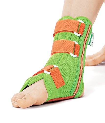 Длительность реабилитации зависит как от степени тяжести травмы, так и от прилагаемых пациентом усилий. После иммобилизации показано обязательное ношение ортопедических приспособлений — жестких ортезов. Они изготовлены в виде сапожков, снабженных каблуком высотой около 3 см. Такая конструкция изделия способствует улучшению кровообращения в задней поверхности голеностопа с воздействием на него незначительных статических нагрузок.