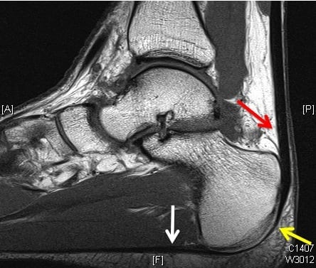Диагноз выставляется на основании осмотра поврежденной ноги травматологом. Рентгенологическое исследование при растяжении ахиллова сухожилия неинформативно, так как соединительнотканные структуры плохо визуализируются на полученных изображениях. Рентгенография проводится только при подозрении на сопутствующий внутрисуставной перелом или вывих. При необходимости пострадавшему назначают МРТ или КТ для оценки состояния ахиллова сухожилия, расположенных поблизости мягких тканей, нервов, кровеносных сосудов.