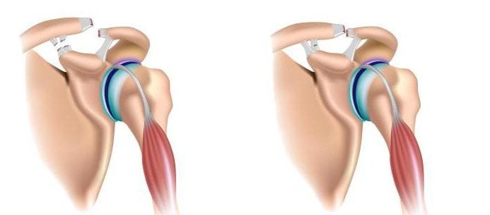 Не путайте повреждения связок с разрывом сухожилий плечевого сустава. Это две совершенно разные патологии. Нарушение целостности сухожилия приводит к отрыву двуглавой, надостной или подостной мышц от мест крепления. Из-за этого они больше не могут нормально сокращаться. Полный разрыв мышечного сухожилия можно распознать по наличию углубления в мягких тканях вблизи плечевого сустава.