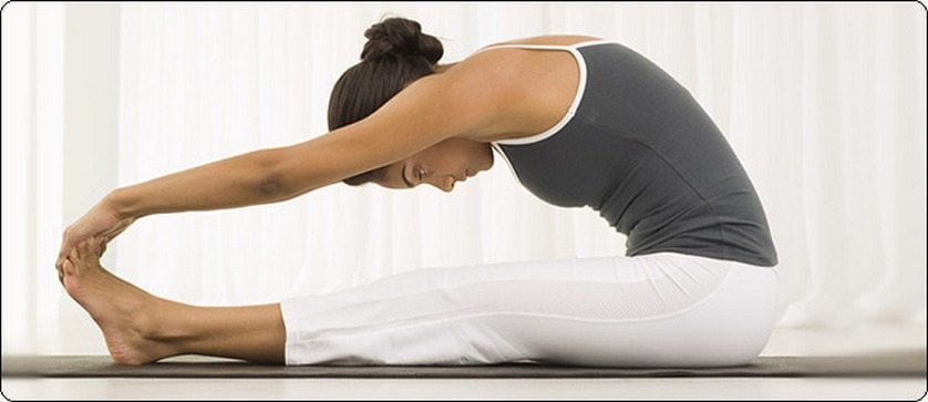 - Присядьте на пол, тянитесь руками до колен, а затем к пальцам ног.