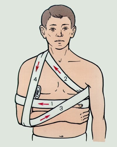 - иммобилизовать (обездвижить) плечо. Для этого используются любые подручные средства: эластичный или марлевый бинт, косынка, шарф;