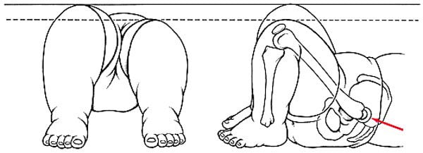 - асимметричное расположение ягодичных, бедренных и подколенных складок;
